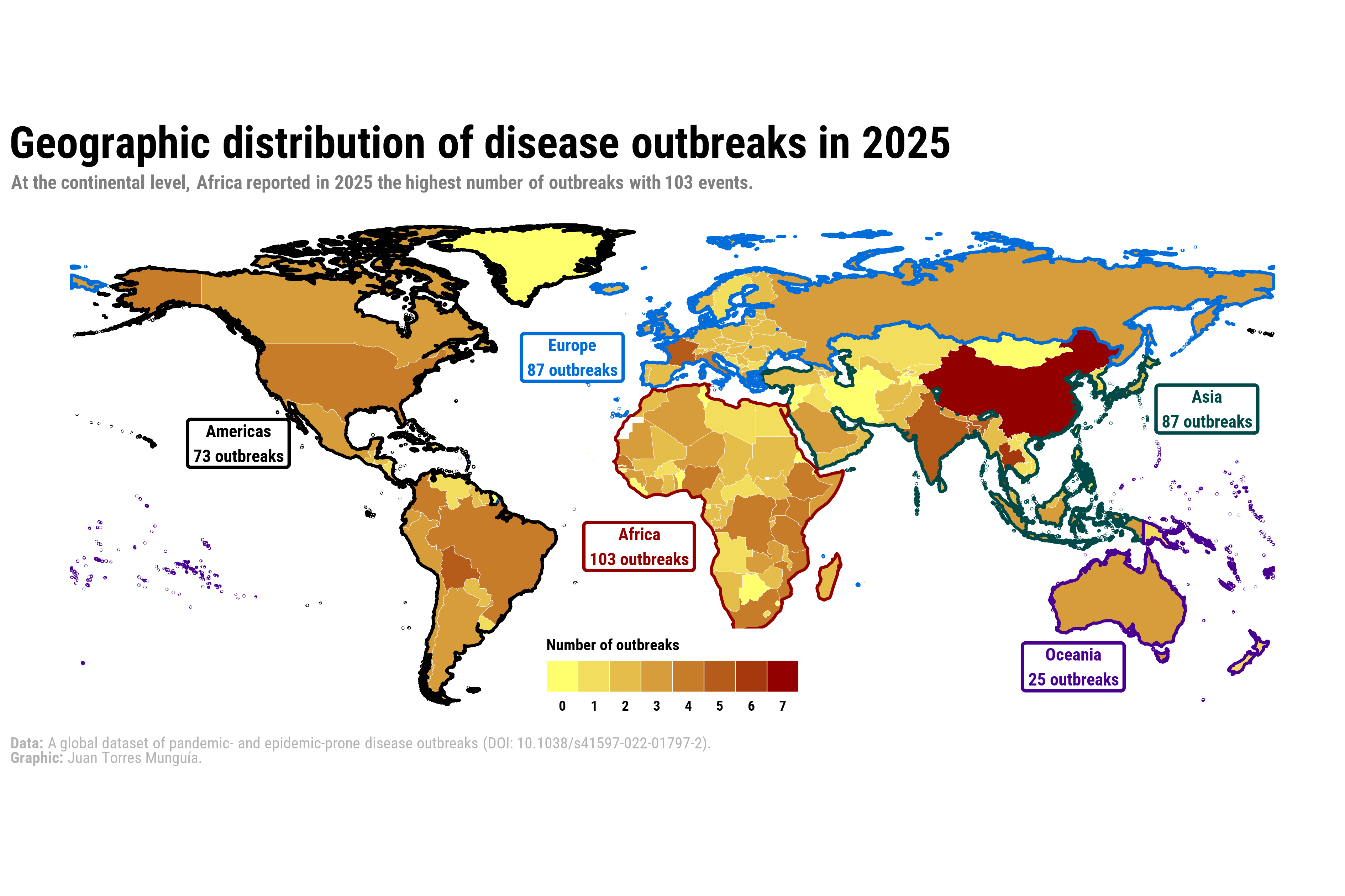 title_chart <- "Geographic distribution of disease outbreaks in 2025"